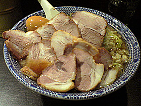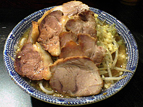 表だって二郎関連店とは主張していませんが、入店するやいなや明らかに二郎の臭いが・・。メニューは「ラーメン」「チャーシュー麺」など普通のラーメン屋を装ってはいますが、隠しきれませんぜ。頼んだのは「チャーシュー麺」。「大盛り」や「中盛り」と言うメニューもあったが、今回は普通で。