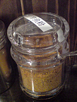 また、カウンターに置かれた「魚粉」を振りかければ一瞬にして近年ハヤリの「豚骨魚介風味」を楽しめるようになります。これはなかなかのアイデアですね。