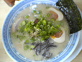 その筋では有名な博多らーめん店。昔は北海道味噌、東京醤油、博多豚骨の3種類のラーメンを提供していたが、現在は博多らーめんのみを提供。