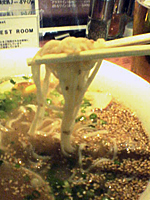 まそんな訳で、今まで福岡でしか味わえなかったラーメンが東京進出。東京も東京、東京駅に登場です。オープン間もないのでまだ綺麗な店舗。そしてまだオペレーションに不慣れな感があります。スタッフは多数いるのに実際に動いているのが厨房にいるご主人と思われる1人のみ。この人に注文が届かないと飲み物もサイドメニューもラーメンも何も作られないと言う効率の悪さ。おばちゃん店員さんは明らかにテンパっていて、僕が座っている椅子に思いっきりぶつかったりしても完全にシカト。大丈夫だろうかと言う不安が横切ります。