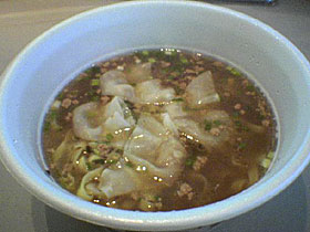 で、食べてみると。。。。どうなんでしょう。少なくとも僕は美味しいとは感じませんでした。スープはいたって普通〜のインスタント味で他にもっと美味いインスタントスープはたくさんあると思います。ワンタンはたしかに皮は美味いですが、具がメチャクチャ安っぽい味なのでどうでも良いと言うか、別に入ってなくても良いです。