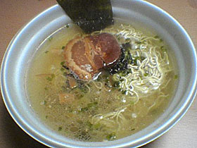スープを受け止める麺もなかなか美味いです。カップにしてはかなり細麺で食感も「博多とんこつ かためん」と良く似ています。例によってのびやすいので3分も待たずに、様子を見ながら箸でかき混ぜてさっさと食べてしまうのが良さそうです。