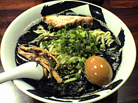 奇をてらったのは分かりますがちょっとやりすぎでしょう。悪いけど美味しくないです。イカスミを使うのが悪いって訳じゃないですけど、せめて「柳屋」の「ばさら」や、「きらら」の黒くらいにしといた方が料理として楽しめるんでは無いでしょうか。