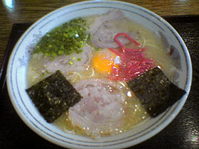気さくな感じのおじさんが作ってくれたラーメンはオーソドックスな博多系ですが、最初から紅ショウガが乗っちゃってるのはちょっと残念です。実はこの紅ショウガ、何故か豚骨よりも臭かったりして。。