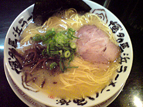 具は博多ラーメンらしくお粗末、、、もといシンプルに、葱、キクラゲ、海苔、チャーシュー。チャーシューも博多らしくペラペラでオマケ程度の物です。