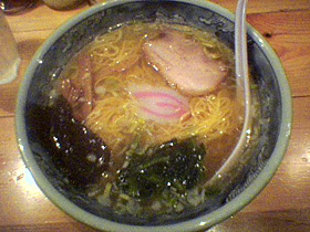 具はほうれん草、なると、メンマ、海苔、ネギ、チャーシュー2枚です。メンマはたぶん業務用。ちょっとしつこい感じがします。特筆すべきはチャーシューで、これは非常に柔らかくジューシーで、味付けは濃すぎず、醤油ダレの香りが良い物です。このチャーシューのためならばここに入店するのも悪くないですな。