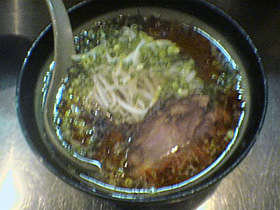 具はモヤシ、万能ネギ、チャーシュー。チャーシューは肉厚でジューシーで柔らかく、かなり美味いです。これならチャーシュー麺でも良いなぁ。モヤシは素茹でされたもので、ちょっとばかし水っぽいのでスープから浮いた感じがしますけど、箸休めと言うか、丼一杯分のラーメンを食べる上では良い味の変化をもたらしてくれるのかな。。。?とも思います。