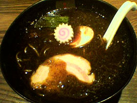 「焦がし」と名についているので当然焦げてるんだろうと思ってはいたのですが、いざ丼が運ばれてくるとその真っ黒っぷりに改めてびっくりします。そしてスープを一口飲んでみてまたまたびっくり。ホントに焦げてますよ。焼き鳥とか焼き肉の焦げた炭の部分に似た臭いがします。これは人によっては抵抗あるかもしれませんね。しかし味噌が濃厚で力強いので焦げに負けてません。表面にはラードの層があって、これがフタの役割をし、スープはいつまでもアツアツです。熱すぎるくらいです。この辺は「純連(すみれ)」や「純連(じゅんれん)」に通ずるものがあります。焦げたそぼろ肉もたくさん浮いています。