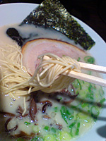 しかしラーメンの方はイマイチな感じでした。スープがちょっとつまらないです。サラサラとライトな豚骨スープで臭みはなく、マイルドでクセがありません。そして若干ゴマ油の香りがする気がします。クセの無い分受け入れやすい味だと思いますが激戦区のこの場所ではもうちょっとパンチが欲しい気がします。