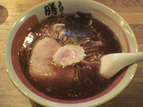 | 12月25日に渋谷にオープンしたばかりの「麺喰王国-NOODLE-CAFE-」ですが、どの店舗も苦戦しているようで出だしは大コケです。ここ「勝丸」も横浜ラーメン博物館の老舗で知名度もあるはずなのに、今のところ常に閑古鳥状態。店員の呼び込みも「あっさり醤油でおいしいですよ〜〜〜」と、ああ、自分でおいしいって言っちゃったか。と、なんとも痛いものがある。