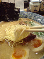 そしてスープを飲んでみてまず思ったのは、、下北沢の「頭」と同じ味ですな。ん〜。なんというか不自然に甘みが強く、あまり豚骨らしい感じがしません。 まあ美味しいと言えば美味しいのかもと思いますが、豚骨好きが喜ぶ類のスープとは言い難いでしょう。