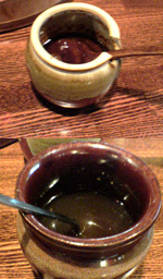 面白いのはカウンターにおいてある唐辛子と、コショウの2種のタレ。唐辛子の方はそれほど目新しさを感じませんが、コショウダレは珍しいですね。少しずつスープに入れてみて味の変化を楽しめます。