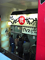 今年(2004年)の12月1日にオープンしたばかりで、ガード下と言うハンデを背負った立地だが、常にたくさんのお客さんでにぎわっているようです。この日も「なんつッ亭」には50人ほどの行列。他の店舗も行列こそ無くともお客さんの入りは良い感じでこの施設自体が成功しているんだなと感じさせられます。某「王国」とは大違い。