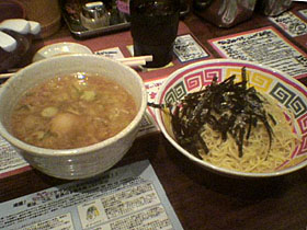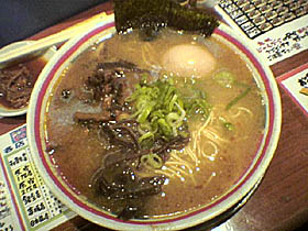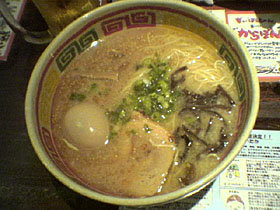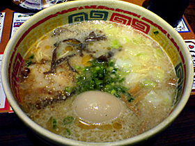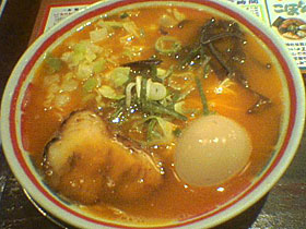 スープは豚臭い中にも唐辛子のおかげ?で、「ぼんしゃん」よりもこうばしい香りがします。思いっきし辛いんですけど、ベースが「ぼんしゃん」だけあって、濃厚なコクがあり、旨いぞおりゃ!カプサイシン効果で化調が良く分からなくなるメリットもあり。心なしか、味玉もぼんしゃんよりもスープに合ってる感じがしました。
