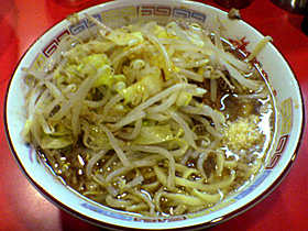 かろうじて調布市だが駅周辺は世田谷区と三鷹市が入り乱れる町、仙川。ここ数年で急激な発展を見せ、駅前はすっかり小ジャレた町になり、さしずめミニ代官山の様な雰囲気に。そんな町にも二郎あり。数百メートル行けば世田谷区に突入する、市部でも最も23区に近い場所にあるかもしれない「二郎仙川店」。町の雰囲気に同調するようなライトな二郎は、他の二郎とはまた違う魅力を持っていてファンも多かった。しかし去年(2004年)9月にご主人の急逝により突然シャッターを閉めることとなる。