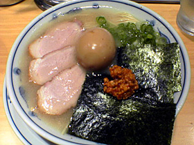 さて、豚骨スープと言うのは熟練した職人さんでも一定の味に保つのが難しい代物だそうで、オープン直後と今とでは味が変わってしまってるかなぁ・・?なんてちょっと不安をいだきつつスープを一口。。。おお!前よりも濃厚になったような気がしますね。ちょっとネットリと感じるような濃厚っぷりはさすが。