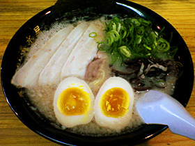 具は今回は特製ですが、チャーシュー3枚、海苔2枚、キクラゲ、万能ネギ、味玉。あまりどれも特筆することは無い程度でこれも博多らしいと言えば博多らしいですな。